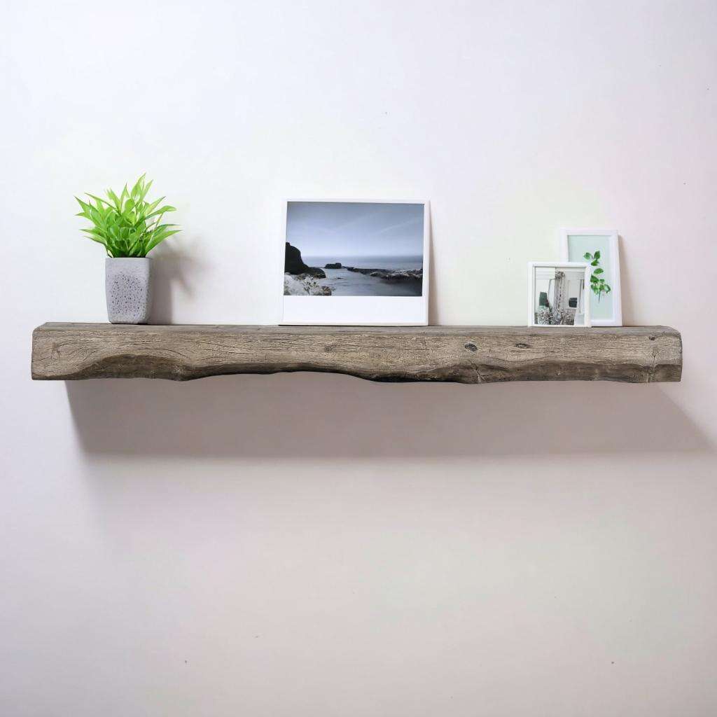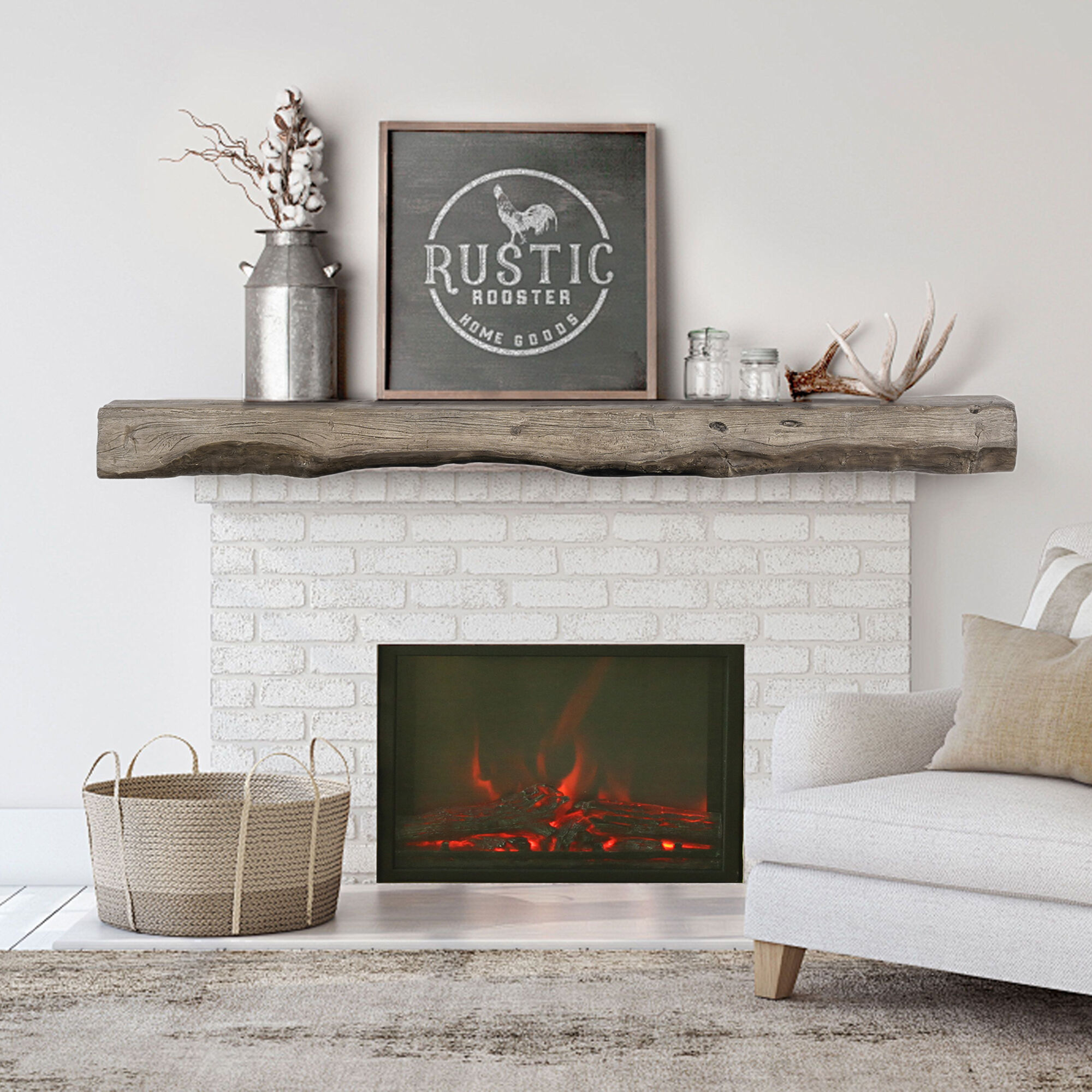 Best for fireplace under 72 inch. Size: 72”W x 9”D x 5.6”H. Our large floating shelf is the first to be made of Magnesium Oxide, which is manufactured to rustic wood grain through advanced craftsmanship. Unique raw edge makes this mantel shelf decor full of the nature wood.