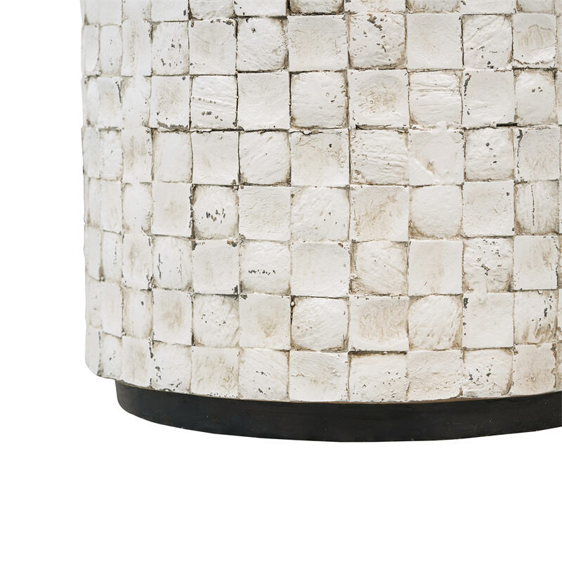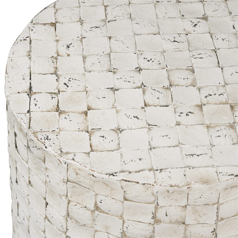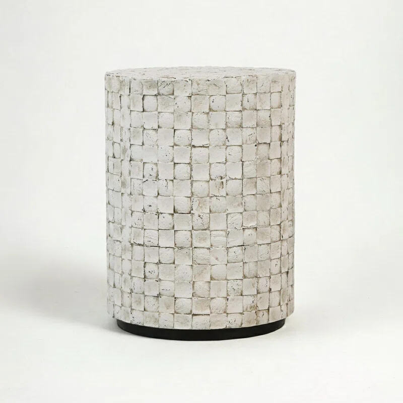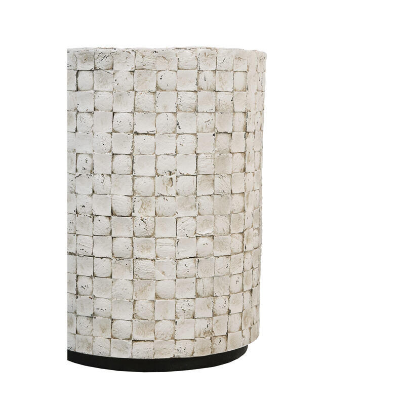 Okrągły stolik wykonany z MGO, który jest odporny na wysoką temperaturę, ulega degradacji i składa się z nowych materiałów przyjaznych dla środowiska pochodzących z natury, następnie ułożonych w mozaikę oraz naturalnych muszli kokosowych. Charakterystyczny kształt tego stolika odmieni niewygodne przestrzenie, tworząc idealne miejsce do przechowywania książek, dzieł sztuki i stylowych elementów dekoracyjnych. Efekt starzonego wyglądu dodaje fakturę i zainteresowanie wnętrzu. Różnice wynikające z naturalnych procesów i materiałów oznaczają, że każdy egzemplarz jest wyjątkowy i pasuje do indywidualnego stylu. Połącz z wygodnym sekcjonalnym i fotelem dla dwójki, aby stworzyć przestronną przestrzeń do cieszenia się małymi, codziennymi chwilami.